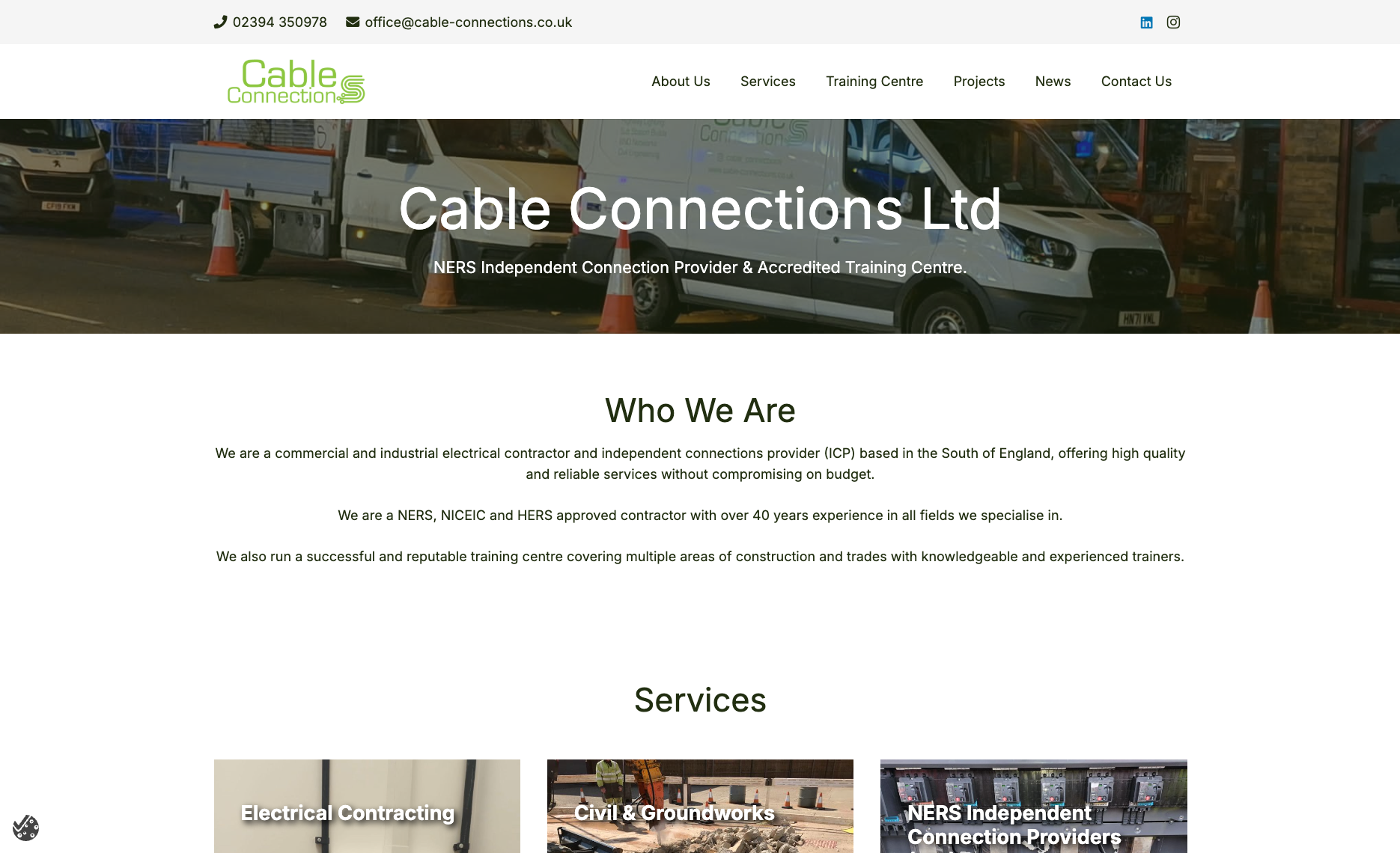 Cable Connections Ltd is a certified training centre based in Portsmouth. The scope of work was to design & build a large, multi-page website that could process payments and take event bookings for courses, as well as provide information on their approved training.