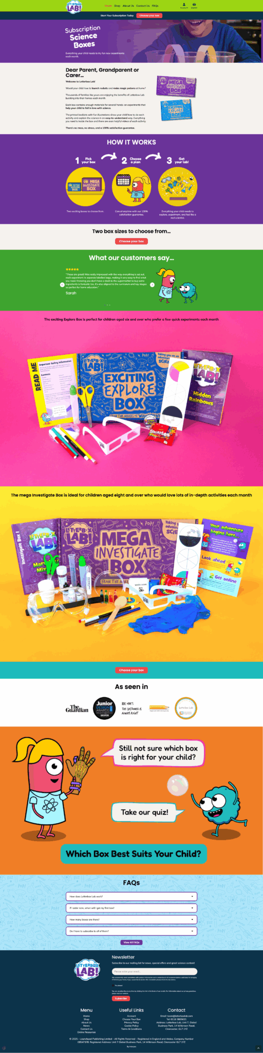 We collaborated with Letterbox Lab to design and develop a tailored eCommerce website that brings their vision to life and makes it easy for families to subscribe.