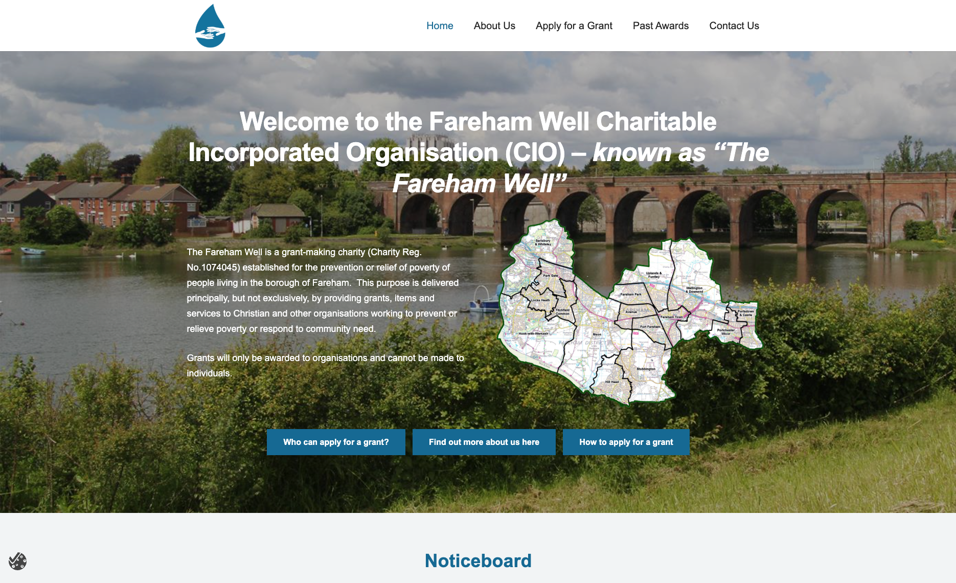 Noticeboard and Past Awards: Includes latest news posted by the Fareham Well and recently successful applicants will appear under Past Awards.